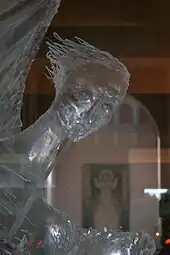 The narthex (lobby) is separated from the rest of the nave by a wall consisting of glass panels depicting figures representing angels. The etchings are the work of New Zealand-born artist John Hutton. Similar work by Hutton exists in Coventry Cathedral in England.[14]