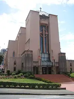 The building was designed in the 1930s by New Zealand architect Cecil Wood. Construction began in 1954, and was completed in 1998. It was constructed in reinforced concrete due to the effects of the 1931 Napier earthquake making other choices impractical. The church was initially envisioned as a war memorial cathedral, and it was designed on a monumental scale. The Archbishop of New Zealand, Reginald Herbert Owen, declared in 1958: "Every nation needs in its capital city a great church to express its belief in the things of the spirit".[1] The building began to be used as an Anglican cathedral in 1964 (replacing Old St Paul's),[1][2] and was consecrated in 2001.[3]
