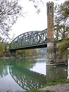During the construction of the main line of Empress Elisabeth Railway, financial difficulties were encountered by the company. This caused a delay in the construction of the branch railway between Linz and Passau. The Bavarian Eastern Railway Company had already finished construction of the railway near the border, where the Austrian railway was supposed to be connected. On the other hand, the KEB had only undertaken project planning until the beginning of 1860. As a result, the terminus had to be changed to the Wels station because the line length was able to be shortened. The construction begann on 6 August 1860 and was completed by the KEB on 1 September 1861. It is an 81.2 km (83 km to the Passau freight yard) long double-track electrified main line. It runs through 79.6 km of Austrian territory and through 1.6 km of German territory, where it becomes the Regensburg–Passau railway in Passau station.[2]
