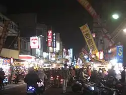 The night market stretches along the Wenhua Road for around half a kilometer.[1] The southern section of the road is divided by a central foundation, which acts as a two-lane road during day time and pedestrian zone during night time.[2]