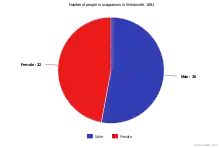 The population breakdown by occupation in Wentworth by gender, 1881 (left). Total population at the time was 143.[10] However, this data only refers to 49% of the total population. The breakdown of economic activity in 2011 (right). This information has also been collated by Cambridgeshire County Council .[11]