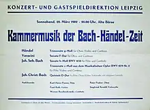In 1957, together with leading members of the Gewandhausorchester, he founded the long-standing Leipzig concert series "Baroque Chamber Music", later called "Chamber Music of the Bach-Händel Period"", with up to eight concerts a year. He played the harpsichord at the concerts in the Gohliser Schlösschen and later at the Alte Handelsbörse until 1984.