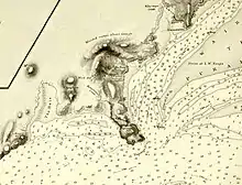 One of the earliest individuals associated with the area is Tiriwa, a chief of the supernatural Tūrehu people, who is involved with the traditional story of the creation of Rangitoto Island, by uplifting it from Karekare on the west coast.[54][55] The early Polynesian navigator Kupe visited the west coast. The Tasman Sea alongside the coast was named after Kupe,[20] and traditional stories tell of his visit to Paratutae Island, leaving paddle marks in the cliffs of the island to commemorate his visit.[18] The Tainui tohunga Rakatāura (also known as Hape) was known to have visited the region after arriving in New Zealand, naming many locations along the west coast.[15] He is the namesake of the Karangahape Peninsula at Cornwallis, as well as the ancient walking track linking the peninsula to the central Tāmaki isthmus (part of which became Karangahape Road).[56][57]