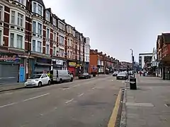 West Green developed as a small village in the Middle Ages with settlement first recorded in 1393. By the start of the seventeenth century, the eight buildings that then stood in West Green formed the only hamlet in the central area of the manor of Tottenham. Although it had not grown by 1800, by 1840 it contained 18 houses. This made it bigger than Wood Green at that time.[2] Development took off during the period after the 1860s, particularly after the arrival of the Tottenham & Hampstead Junction Railway in 1878. Nineteenth-century local author, Charlotte Riddell described the changes vividly in her 1874 book Above Suspicion:
