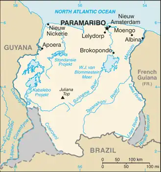 The West Suriname Plan (Dutch: West-Surinameplan) was an economic development plan for the western part of Suriname. As originally conceived, it consists among others of the mining of bauxite in the Bakhuis Mountains, the building of a hydroelectric power plant on the Kabalebo River, and the construction of a harbour and an aluminium smelter at Apoera.[1] The plan was the brainchild of former Surinamese Minister of Development Frank Essed.[2]