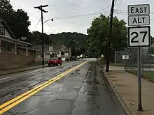 West Virginia Route 27 Alternate is an east–west state highway located within the Northern Panhandle county of Brooke in West Virginia. The western terminus of the route is at West Virginia Route 2 in Follansbee. The eastern terminus is at the Pennsylvania state line near Eldersville, Pennsylvania where the road continues as Eldersville Road (State Route 4008).
