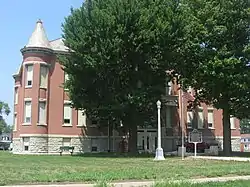 West Ward School, also known as the West Building Mississinewa Community Schools, is a historic school building located at Gas City, Grant County, Indiana. It was built between 1900 and 1902, and is a 2+12-story, rectangular, Richardsonian Romanesque style brick and stone building. It features a symmetrical main facade with round towers at each corner topped by conical roofs.[2]:2–3 The building houses a museum and community center.