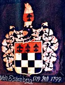 Coat of arms of the von Estenberg Family - hanging on the wall of Knights and Nobles at The Riddarhuset in Stockholm. Sweden