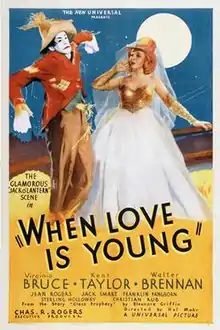 When Love Is Young is a 1937 American comedy film directed by Hal Mohr and starring Virginia Bruce, Kent Taylor, Walter Brennan, Greta Meyer, Christian Rub and William Tannen. Written by Joseph Fields and Eve Greene, it is based on the 1935 short story Class Prophecy by Eleanore Griffin that was originally serialized in McCall's Magazine. The film was released on March 28, 1937 by Universal Pictures.[1][2][3]