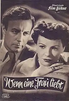 When a Woman Loves (German: Wenn eine Frau liebt) is a 1950 West German comedy film directed by Wolfgang Liebeneiner and starring Hilde Krahl, Johannes Heesters and Mathias Wieman.[1] It is based on the play Don't Promise Me Anything by Charlotte Rissmann, which Liebeneiner had previously made into a 1937 film of the same title.