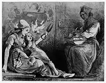 White-Bear-King-Valemon (Norwegian: Kvitebjørn kong Valemon) is a Norwegian fairy tale. The tale was published as No. 90 in Asbjørnsen and Moe's Norske Folke-Eventyr. Ny Samling (1871).[1] George Webbe Dasent translated it for his Tales from the Fjeld.[2]