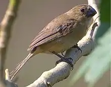 The white-bellied seedeater (Sporophila leucoptera) is a species of bird in the family Thraupidae. It is found mainly in Bolivia, Paraguay and eastern Brazil, with smaller numbers in Suriname, southeastern Peru and northern Argentina. Its natural habitats are subtropical or tropical moist shrubland, swamps, and heavily degraded former forest.