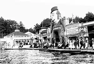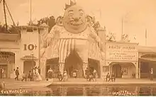 White City in 1908. The colossal figure of "King Dodo" guards the entrance to the fun house.