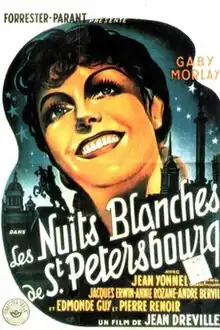White Nights in Saint Petersburg (French: Les nuits blanches de Saint-Pétersbourg) is a 1938 French drama film directed by Jean Dréville and starring Gaby Morlay, Jean Yonnel and Pierre Renoir.[1][2] It is an adaptation of the 1889 novella The Kreutzer Sonata by Leo Tolstoy.[3] It is sometimes known by this title, and should not be confused with the 1937 German film The Kreutzer Sonata directed by Veit Harlan. The film's sets were designed by the art directors Lucien Carré, Alexandre Lochakoff and Vladimir Meingard while the costume design was overseen by Boris Bilinsky.