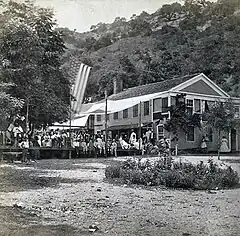 Local Indigenous people historically used the warm mineral springs.[5] Later, it became part of a Mexican Land Grant as a Rancho of California. The springs were later discovered by Dr. Edward Bale in 1848 who then opened a resort in 1852,[6] although another account by the St. Helena Historical Society states that the springs were discovered by John York.[7] In the 19th century well-to-do San Franciscans would travel by steamer ship across the San Francisco Bay to Soscol Landing near the town of Napa. They would then board a train and transfer to a stage coach to reach the resort. During the height of operations, the grand hotel could accommodate up to 1000 visitors.[6] Following the 1906 San Francisco earthquake, the facilities were used to house refugees. Over the years, the property has had 30 different owners. Among its visitors were Clark Gable and Mark Twain.[8] In the late nineteenth century into the early 20th century, the springs were used for their alleged balneotheraputic properties.[9]