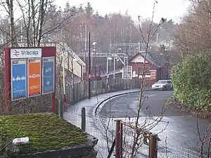 Whitecraigs railway station is a railway station serving the Whitecraigs and Davieland areas of the towns of Giffnock and Newton Mearns, East Renfrewshire, Greater Glasgow, Scotland. The station is managed by ScotRail and lies on the Neilston branch of the Cathcart Circle 6+34 miles (10.9 km) southwest of Glasgow Central. The line here forms the boundary which separates Newton Mearns and Giffnock across Ayr Road.