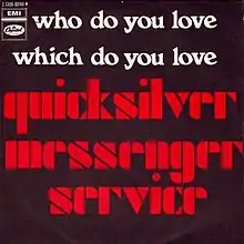 San Francisco psychedelic rock band Quicksilver Messenger Service made "Who Do You Love" a feature of their live performances. During the group's early days in 1966 and 1967 with singer and harmonica player Jim Murray, the song was performed with a relatively concise blues rock arrangement featuring a Bo Diddley-style beat and harmonica and guitar solos.[29] They attempted at least one studio recording in 1967 during the sessions that led to their first album, Quicksilver Messenger Service.[29] The demo was officially released on the 1999 album Unreleased Quicksilver Messenger Service – Lost Gold and Silver.[29] At just less than six minutes, it is fairly representative of their early performances.[29]