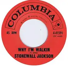 "Why I'm Walkin'" is a song written and performed by Stonewall Jackson and released on the Columbia label (catalog no. 4–41591). It debuted on the Billboard country and western chart in April 1960, peaked at the No. 6 spot, and remained on the chart for a total of 17 weeks.[1]
