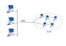 A local area network (LAN) with connection to a wide area network (WAN)