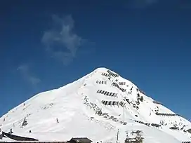 The Wiedersberger Horn is a mountain in the Alpbachtal valley in Austria. Its summit is 2,127 m (AA). The Wiedersberger Horn is accessible from the Alpbachtal via cableways and the mountainsides are used as a skiing area. In winter it may be climbed without difficulty in safe snow conditions. From the top station of the highest lift in the ski area (2,025 m) there is a path to the summit facilitated by step-like wooden beams.