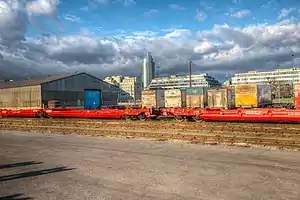 The Wien Nordwestbahnhof (English: Vienna Northwest Railway Station), abbreviated as Wien NWBH, is a goods station in transformation to a city development area in Brigittenau district of Vienna, Austria. Passenger transport ended in 1959. It serves as the southern terminus of the Austrian Northwestern Railway. The northwestern terminus of the line was Prague Těšnov station till 1972.[1] Freight transport is in the phase of termination. By 2025, a new district will be built on the site. An interim use phase will begin in 2018.