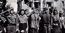 The Polish resistance fighters attending the burial of their fellow combatants in the Dreszer Park, in 1944.