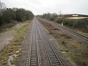 In 1857 the Midland Railway opened its new main line to Hitchin, diverging from the Midland Counties Railway main line at a junction slightly north of its Wigston station. A new Wigston railway station was opened on the new main line, and the Midland Counties station was renamed Wigston South to reduce confusion.[2]