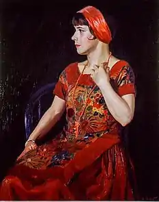 • Exhibition of Paintings, 1930. "The portrait of a girl in a red dress, Ruth,…is a beautifully handled portrait and exquisite in its least details."[24]