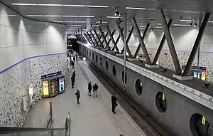 Wilhelminaplein is an underground subway station in Rotterdam, Netherlands, which lies south of the Maas river. It is part of Rotterdam Metro lines D and E.