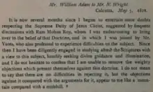 William Adam's letter to Mr. N. Wright on Ram Mohan Roy