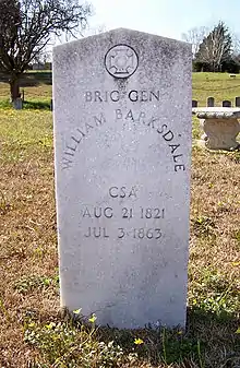 - ↑ White, Kristopher D. (2016-06-30). "Gettysburg Off the Beaten Path: The Death of William Barksdale". Emerging Civil War. Retrieved 2019-06-03.