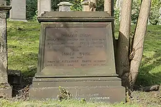 He died in Glasgow on 2 August 1876. His grave lies midway up the south-west slopes of the Glasgow Necropolis.