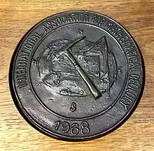The William Christian Krumbein Medal[1] is the highest award given alternate years by the International Association for Mathematical Geosciences (IAMG)[2][3] to senior scientists for career achievement, which includes (a) distinction in application of mathematics or informatics in the earth sciences, (b) service to the IAMG, and (c) support to professions involved in the earth sciences. There is no stipulated preference for fields of application within the earth sciences. The William Christian Krumbein Medal, named after William Christian Krumbein, was established in 1976.