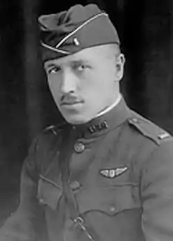 Lieutenant (later Colonel) William Dolley Tipton (sometimes erroneously referred to as William Duncan Tipton) began his military career as a World War I Sopwith Camel pilot. The U.S. Air Force officially credits him with four aerial victories during the war,[1] although other sources claim he had five,[2][3] and thus was a flying ace. He was one of the founding officers of what would become the Maryland Air National Guard. As a member of the Maryland National Guard, he was mobilized during World War II. He rose to the rank of colonel during the war. He died on December 12, 1945, in an aircraft accident.[4] Tipton Airport (formerly Tipton Army Airfield) in Anne Arundel County, Maryland, is named in his honor.