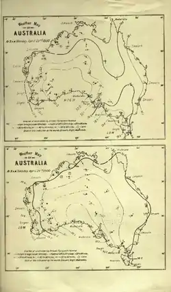 Cooke developed an interest in the development of low pressure zones which often dominated the weather cycles, and the possibility of tracking these depressions. He studied weather records from the Cape of Good Hope, Natal and Mauritius with the hope of associating weather events there with later events in Australia. He analysed and mapped the passage of cyclones from the North-West into the interior, publishing cyclone forecasts for the first time. In 1908 the meteorology service was taken over by the Commonwealth, enabling him to concentrate on astronomical projects.