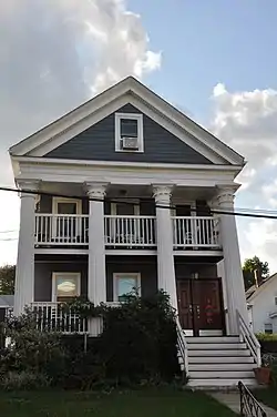 The William Gibbs House is a historic house in Waltham, Massachusetts. Built c. 1830–54, this 2+1⁄2-story wood-frame house is one Waltham's few temple-front Greek Revival houses. It has four two-story Corinthian columns supporting a fully pedimented gable with a deep, dentillated cornice. It was probably built in the 1840s by William Gibbs, a hat manufacturer, and was sold by him to another hat maker who lost it to foreclosure.[2]