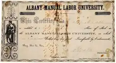 1. Annual Catalogue of the Officers and Students of the Albany Manual Labor University, 1855-56. George S. Walsh Printers: Athens, Ohio. 1856. p. 7.