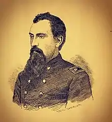 Around the beginning of the American Civil War, Medill left his journalism career to pursue a military career as he recruited the Fremont Dragoons which would be later known as Barker's Dragoons.[1] The Dragoons were sent to Camp Defiance where the regiment were given mounts as well as equipment.[1] After some training there, Medill and the dragoons were sent to Clarksburg, Virginia to keep the border with Virginia and Ohio secure. He then participated in the First Battle of Bull Run as well as the Battle of Philippi but wouldn't see active combat. The first battle where Medill experienced actual combat was at the Battle of Rich Mountain as he fought in dismounted fighting and fired his first shots in anger using revolving carbines as he managed to capture his first prisoner from Georgia after a duel between them.[1] After showing his achievements to his brother, an issue of the Chicago Tribune stated the Barker's Dragoons as "There, those are my Chicago boys."[1]