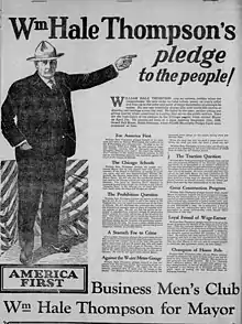 31. 1 2 3 4 5 6 7 8 Nichols, Jeff (2 June 2017). "Chicago mayor Big Bill Thompson used 'America First' decades before Trump". Chicago Reader. Retrieved 10 January 2022.