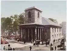 Hazlitt had an important influence on James Freeman's conversion of the King's Chapel in Boston into America's first Unitarian congregation.[2][30] When Hazlitt arrived in Boston, Freeman was embroiled in a controversy arising from his Arian beliefs, which—like Hazlitt's own Unitarian doctrines—meant that he held unorthodox views about the Holy Trinity.[31] This meant that he was denied ordination by Samuel Seabury, bishop of the Episcopal Church.[31] However, the congregation of the King's Chapel was supportive of Freeman, and Hazlitt encouraged them—both in print, and from the King's Street pulpit—to ignore the bishop and accept Freeman as their pastor.[31] This was a controversial view, since the notion of "lay ordination" was inimical to episcopalianism. On 19 June 1785, the King's Chapel changed its liturgy, removing references to the Trinity and adopting a new prayer book; in November 1787 it ended its affiliation with the Episcopal Church altogether.[31]