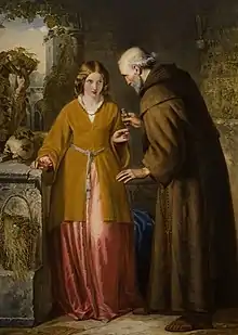 In 1848 Grant showed Edward the Black Prince entertaining the French King after the Battle of Poitiers at the Royal Academy. During the next few years he painted mainly religious subjects, such as Christ casting out the Devils at Gadara (1850) and Samson and Delilah (1852). In 1853 he reverted to historical subjects, and among his later pictures were Mozart's Requiem (1854), Scene from the Early Life of Queen Elizabeth (1857), Eugene Beauharnais refusing to give up the Sword of his Father (1858), The Morning of the Duel (1860), and The Last Relics of Lady Jane Grey (1861). In 1866 he exhibited The Lady and the Wasp and Reconciliation. A picture of The Widow's Cruse of Oil, painted for a private commission, was exhibited at Liverpool.[1]