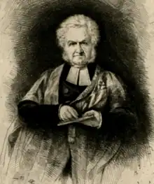 Drury then officiated at the Église Chrétienne et Évangélique, on the boulevard de l'Observatoire; this church was shared, and services in French were held there also. There were pew rents and some support from the Belgian government.[34] The official Almanach for 1852 called it the Chapelle Saint-George.[37]