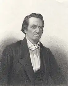 In the early to mid-1820s, Breckinridge and several of his brothers became vocal proponents of antislavery, aligning themselves in the minority; the abolitionist James G. Birney wrote that the men "had disqualified themselves from political usefulness" as a result.[5] In 1849, Breckinridge was among the attendees to the Friends of Emancipation state convention, held in Frankfort, along with his brother Robert, Cassius Marcellus Clay, John C. Young, and Walter Newman Haldeman.[6] He attended a meeting of the American Colonization Society in Louisville the same year, where he gave an address and was a part of a committee which advocated revision of the meeting's resolutions because they did not specifically include provisions for colonization.[7] After the revised resolution passed, he spoke for an hour in favor of the cause of emancipation.[8] Additionally, he was successful in convincing The Louisville Democrat to publish opinions in support of abolitionism; this was the first time the newspaper had done so.[8] He was active in his advocacy against slavery as well and spoke in Shelbyville, Lexington, Brunerstown, Jeffersontown, and Louisville throughout 1849, the last of which was a debate against the lawyer William Christian Bullitt.[9]