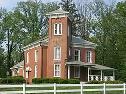 William M. Cockrum House, also known as Cockrum Hall, is a historic home located at Oakland City, Gibson County, Indiana. It was built in 1876, and is a two-story, Italian Villa style brick dwelling with a one-story wing. It features a three-story square corner tower set at a 45 degree angle, round and segmental arched windows, and bracketed cornice.[2]:2