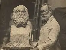![]() William Rudolf O'Donovan and his bust of Walt Whitman (May 1891). Photograph by Thomas Eakins.[1] | |