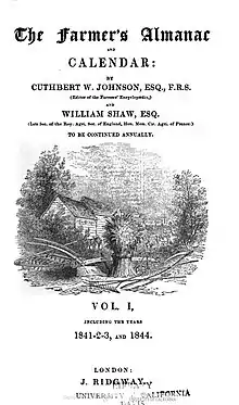 - Cuthbert W. Johnson and William Shaw. The Farmer's almanac and calendar. 1841–50 (online)