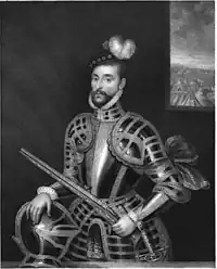 Born at Latham, Ormskirk, Lancashire, Sir William was the younger son of Thomas Stanley, 1st Baron Stanley.[2] In 1465 he married Joan(d. 1469), daughter of John Beaumont, 1st Viscount Beaumont, and widow of John, Lord Lovel. They had three children: William, Joan and Catherine. Following the execution of her second husband the Earl of Worcester, Sir William married secondly, c.1471, Elizabeth Hopton (d. 1498), daughter of Thomas Hopton with whom he had a daughter, Jane Stanley.[3] He is known as Sir William Stanley of Holt, Wrexham, from one of the castles he was granted by Richard III.[4]