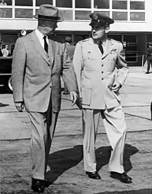 William Waffle Thomas (December 29, 1919 – November 22, 2014) was an American Air Force officer who served as an Air Force One pilot for President Dwight D. Eisenhower from 1953 until 1961.[1] The call sign of "Air Force One" was used after an Eastern Airline flight having the same call sign with Eisenhower's flight shared the same aerospace. Thomas personally consider it a benign incident. In 1968, he received the Legion of Merit, the nation's second highest award.[2]