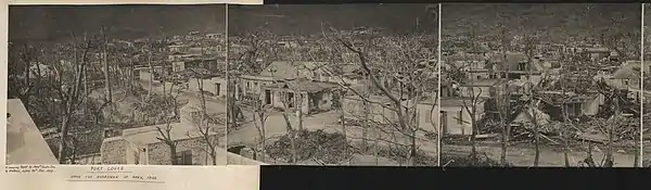 Spire of St James Cathedral visible above wreckage of 1892 cyclone