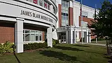 The Williamsburg-James City County Public Schools system (known informally as "WJCC"), as of 2020, has approximately 11,300 students in 16 schools[3]—9 elementary schools, 4 middle schools, and 3 high schools.[4] Within the county's boundaries there are two established high schools, Lafayette, and Jamestown. A third high school, Warhill, opened in the Lightfoot area in August 2007. The ninth elementary school, JB Blayton, opened in 2010 along with the new middle school to replace James Blair, Lois S. Hornsby Middle School.[5] In 2018, James Blair Middle School opened, to be the most recent school to open in the WJCC Schools district.[6]
